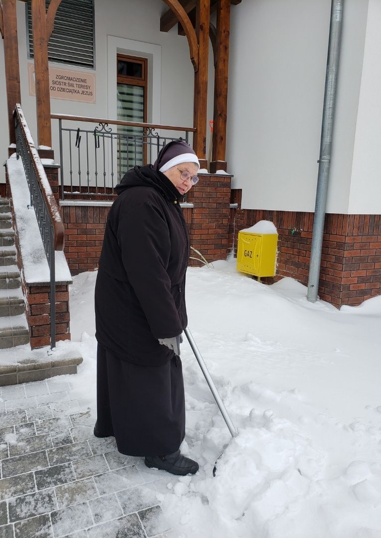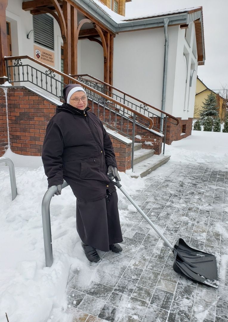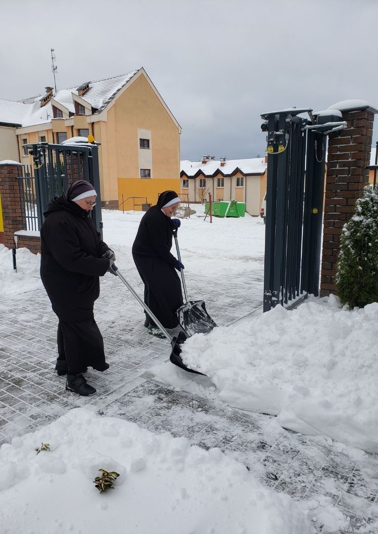 Ostatnie wydarzenia pogodowe dały nam możliwość wspólnej pracy przy odśnieżaniu naszej ostródzkiej posesji. Tym razem opady śniegu były na tyle obfite, że cała wspólnota zwartym szykiem stanęła do „walki” ze śniegiem. Było wiele radości, zapału i życzliwości, które sprawiały, że wspólna praca uszlachetniała nasze serca.